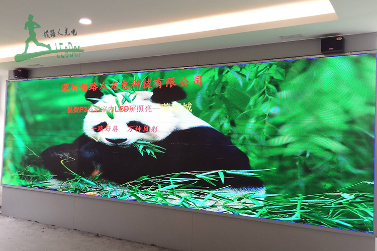 由深圳市領路人光電科技有限公司承接的室內P3全彩顯示屏已成功安裝并點亮應用于韶關莞韶城。