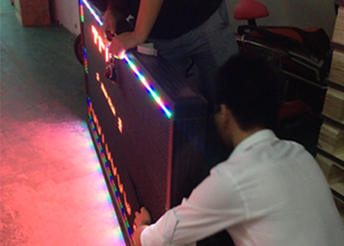 昨天晚上下班之后看見幾位同事在幫客戶調(diào)試LED門頭全彩顯示屏,我們作為生產(chǎn)廠家,不僅為客戶提供LED顯示屏,還為客戶提供技術(shù)支持,在安裝過程中遇到有任何問題,我們都給予耐心去解答。