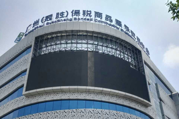 由深圳市領路人光電科技有限公司承接的廣州冠勝保稅商品展示交易中心P10戶外全彩顯示屏在近日成功安裝完成。